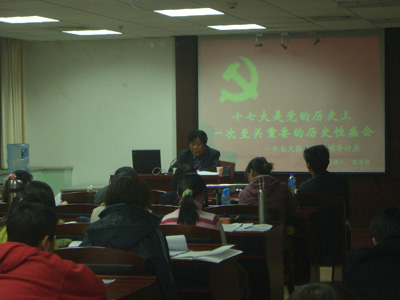 最后,张教授总结十七大报告中提出了“社会建设是全面建设,强调平等”等七个亮点,并且提倡改革创新,这些都说明十七大在历次党代会中所占据的重要位置。