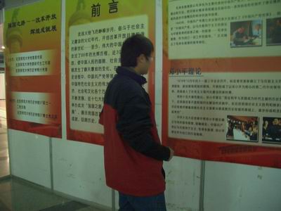 11月21日,经过近一个月的精心筹备,“强国之路”大型图片展终于与广大师生见面了,本次图片展由校党委宣传部,校研工部以及历史学院分党委主办,是历史学院研究生党支部学习十七大精神系列活动中的重头戏。本次展览以图片和文字相结合的方式展示了在党的领导下,中华人民共和国在改革开放以来各个方面取得的巨大成就。
