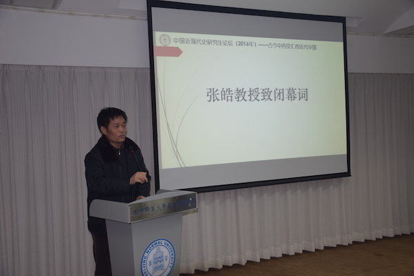 经过一天紧张而热烈的讨论,2016年度中国近现代史研究生论坛于12月7日下午5时举行闭幕式。闭幕式上,【华体会网】张弘毅、北京大学历史学系李乐、中国社会科学院研究生院肖瑞宁分别代表各自分组做了学术小结,张皓教授致闭幕词。