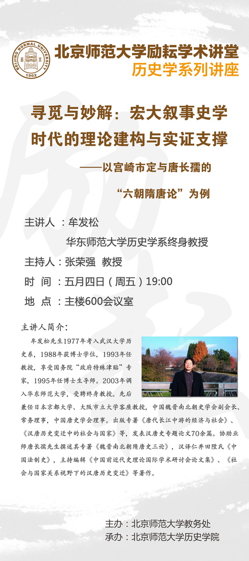 【励耘讲堂】牟发松:寻觅与妙解:宏大叙事史学时代的理论建构与实证支撑——以宫崎市定与唐长孺的“六朝隋唐论”为例