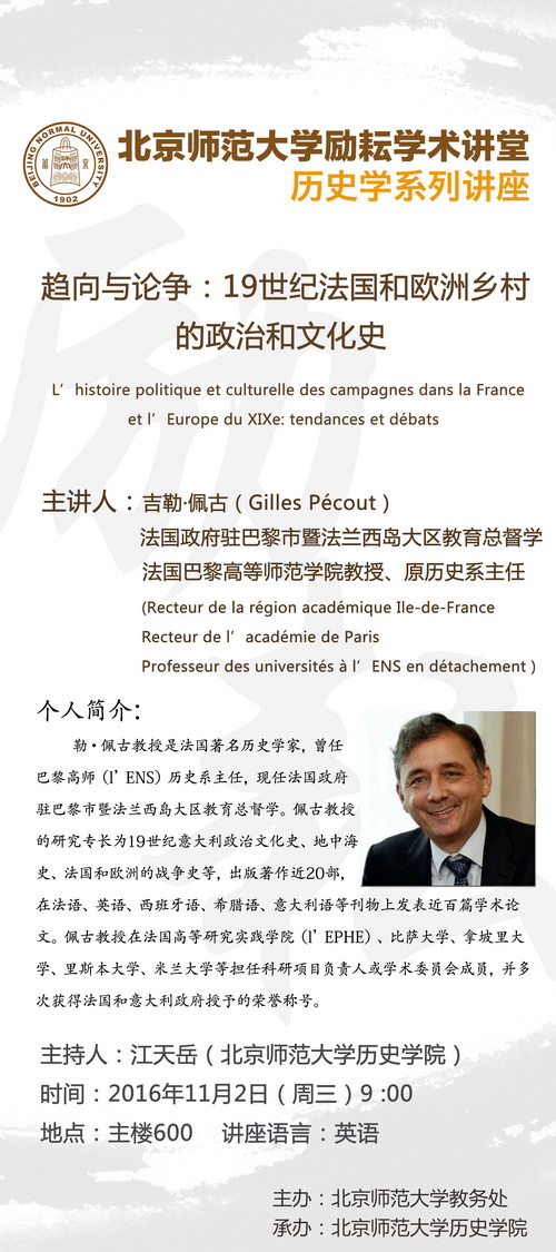 【励耘讲堂】Gilles Pécout:趋向与论争:19世纪法国和欧洲乡村的政治和文化史