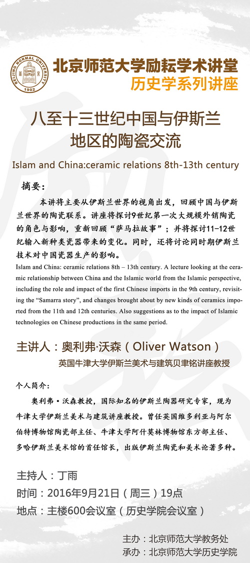 【励耘讲堂】奥利弗·沃森:八至十三世纪中国与伊斯兰地区的陶瓷交流