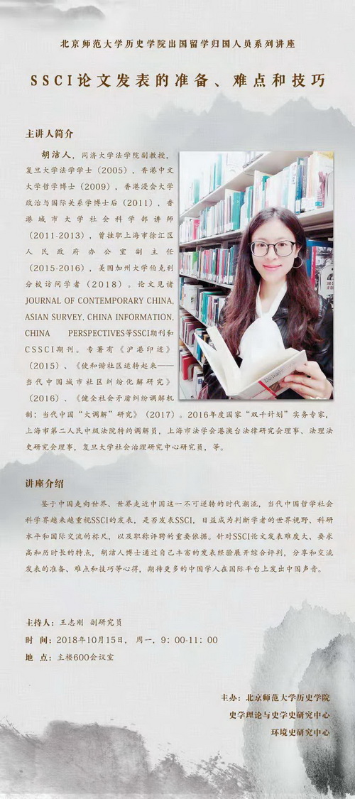 【学术讲座】胡洁人:SSCI论文发表的准备、难点和技巧