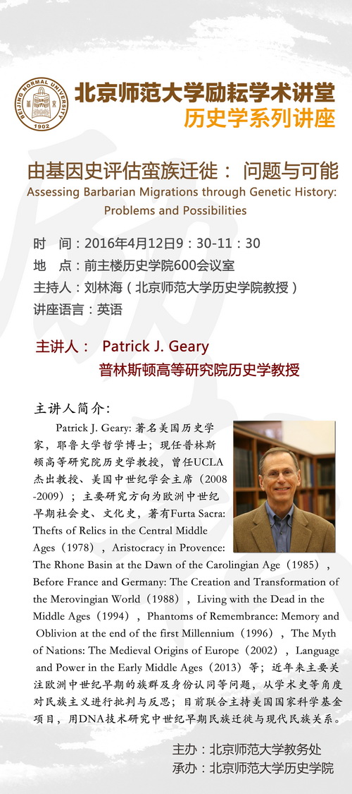 【励耘讲堂】Patrick J. Geary:由基因史评估蛮族迁徙: 问题与可能