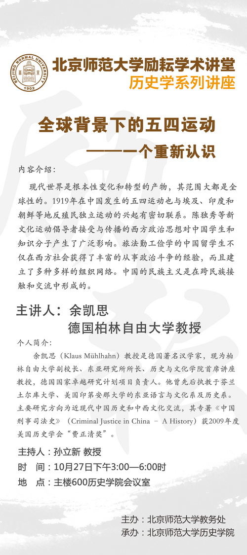 【励耘讲堂】余凯思:全球背景下的五四运动——一个重新认识