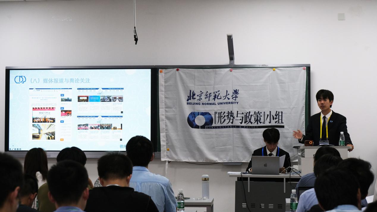 总结会正式开始前,与会师生共同观看了2022-2023年度“形势与政策”小组“新闻串播”节选和总结视频,回顾小组过去一年的工作与活动。第十六届“形势与政策”小组组长李远哲作《【华体会网】“形势与政策”小组2022-2023年度工作报告》,全面总结了“形势与政策”小组本学年工作。《报告》指出:本学年,“形势与政策小组在学校和学院的悉心指导和大力支持下,继续推进体制机制创新和可持续发展,强化团队文化建设和品牌认同,探索“第二课堂”延展和“第二集体”建设同向同行,获得了校内外媒体关注。小组着力于组织建设,强化内部凝聚力,以扎实的时事学习研究为基础,带动成员在能力培养中强化归属体认;积极配合学校形势与政策课程建设,同时大力推进校外实践与国际友好交流,在校际交往中巩固了同兄弟团体的友谊,成绩斐然。小组成功举办“News Today”环球论坛第十七场,“博古通今 胸怀天下”第十二届北京师范大学时事知识竞赛,“博古通今 胸怀天下”第十三届北京师范大学时事知识竞赛以及“古今世界 天下大观”——世界主要发达国家国情系列讲座等品牌活动,为小组建设积累了丰富经验。2022年,小组迎来十五周年生日,无论是公众号推送中组史回忆中的拳拳深情,还是周年晚会上的精彩表演,都进一步深化了小组成员情怀。一年以来,小组受到媒体广泛关注与报道,在校内外均引起良好反响。