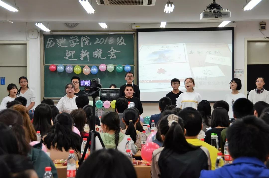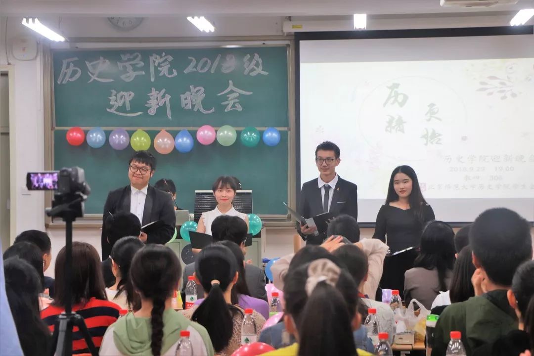2018年9月29日,以“ 历精更始 ”为主题的历史学院2018级迎新晚会在教四306召开。历史学院院长杨共乐老师、历史学院分党委书记郭家宏老师、历史学院分党委副书记王卓凯老师、2018级本科生班主任丁雨老师、2018级本科生班主任曲柄睿老师、历史学院中国现代史教研室孙会修老师、历史学院分团委书记胡小溪老师、历史学院专职辅导员李力老师以及历史学院学生事务助理兼2018级本科班班主任胥晨曦老师参加了本次晚会。此外,学院各社团代表也到达现场共同庆祝此次迎新活动。