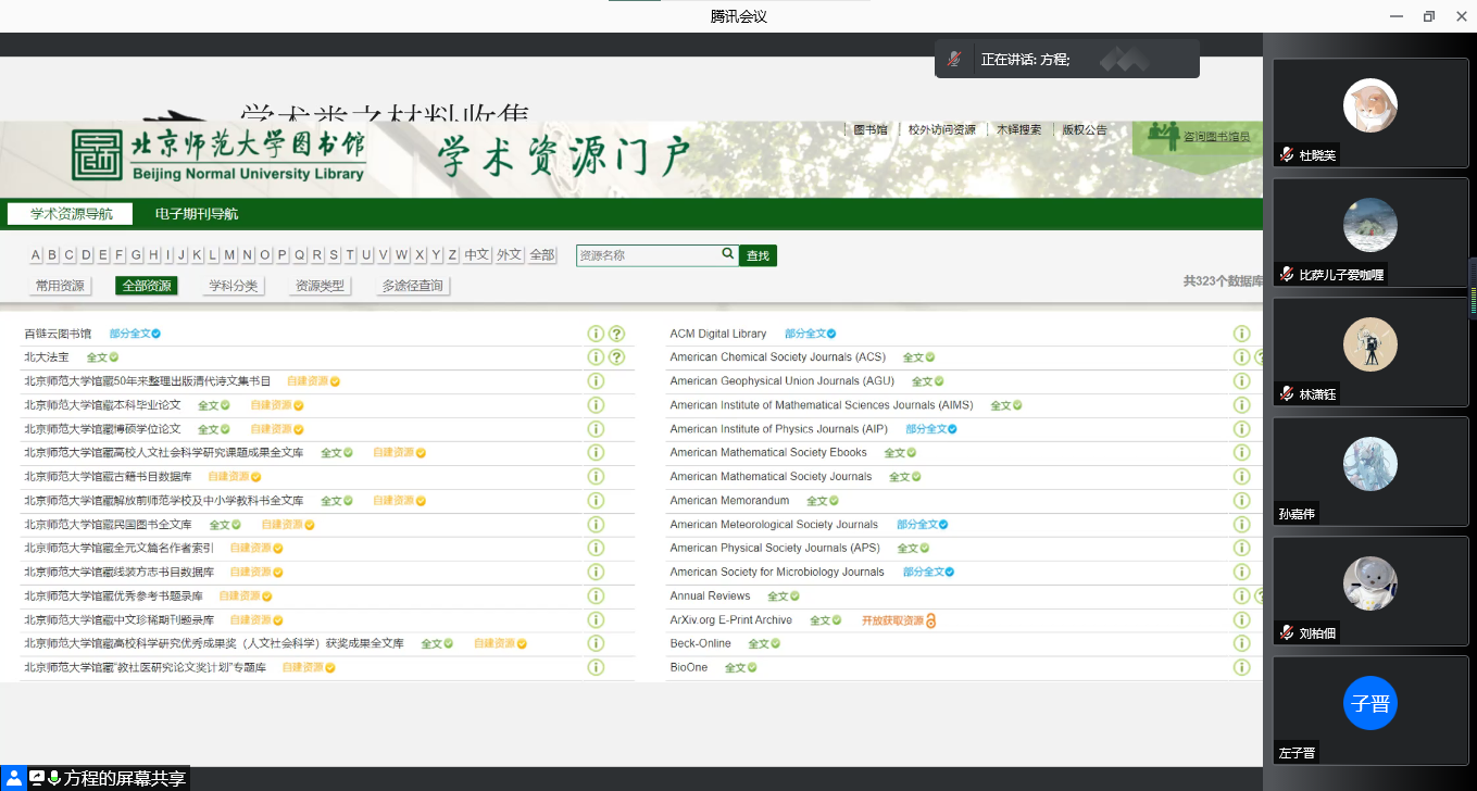 除此之外,方程同学还着重向社员们传授了收集材料的经验,推荐了时事、生活类以及其他自然人文相关的数据资料收集库。作为隶属于历史学院的校园媒体,春秋人文报社始终坚持其独特的历史眼光与学术特性。在培训的后半段,方程同学列举了许多历史学科的学术资源检索方式,如北师大图书馆学术资源门户、历史学相关报刊以及众多优质的历史公众号。这极大程度上拓展了社员们的资料来源渠道,有利于后续文编工作的顺利开展。