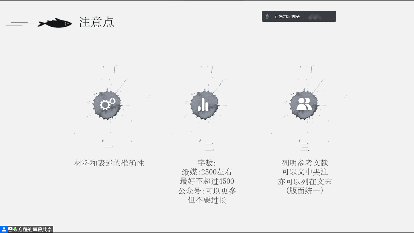 培训中,主讲人方程从大纲和文章写作两方面对新闻稿撰写进行了较为完整的讲解,强调了限制字数、列明参考文献,以及准确运用材料与表述三点,指出了文编工作中需要注意的内容,有助于推动新成员们的写作规范化,尽可能减少错误的产生。