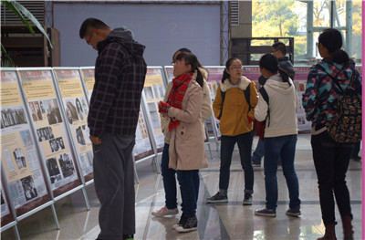 在展览厅内,同学们了解了抗战期间文化名人的爱国事迹后表达了对先辈们崇高的敬意,并纷纷表示要继承先辈们的意志,实现中华民族伟大复兴“中国梦”。