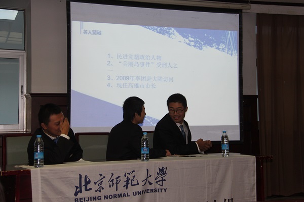 本次大赛由清华大学学生海峡两岸交流协会、南开大学青年国际交流协会、北京师范大学“形势与政策”小组、北京师范大学“两岸四地”青年交流协会、北京大学台湾研究会共同主办,竞赛主要考查台湾地区的历史、地理、人文知识,关注当前两岸重大议题,为京津高校学子提供了一个展示个人才华与思辨能力的舞台。我校“形势与政策”小组承担了北京师范大学赛区的选手选拔工作。
