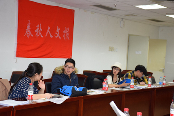 2015年3月15日下午2:00,历史学院《春秋人文报》在主楼A600组织召开了首届“首都高校大学生家史征文大赛”合办方交流会。参与此次交流会的除了我院《春秋人文报》的社长刘媛、主编吴姚函,还有来自北京大学历史学系刊物《采薇》、中国人民大学历史学院院刊《绎思》杂志、首都师范大学历史学院《鸣报》的负责人与学生代表。