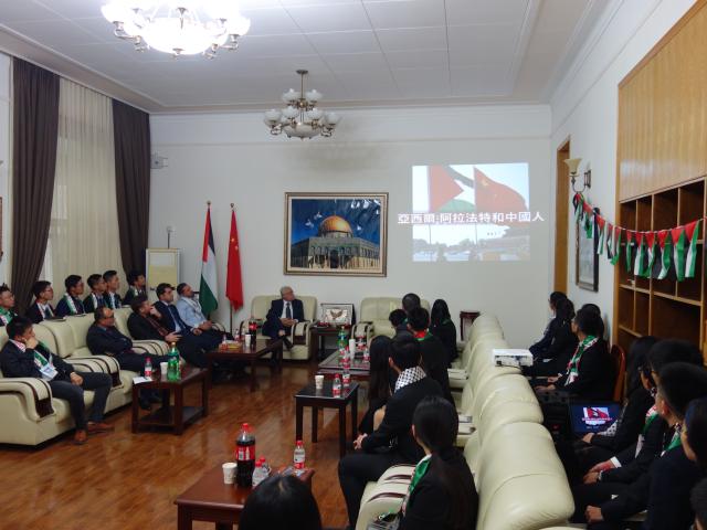 2018年11月10日下午,应巴勒斯坦国驻华大使法里兹·马赫达维(Fariz Mahdawi)邀请,我院“形势与政策”小组成员代表赴巴勒斯坦国驻华使馆纪念已故巴勒斯坦民族权力机构主席亚西尔•阿拉法特逝世十四周年。