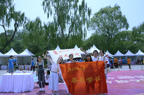 5月21日上午,在副社长白月的带领下,春秋学社杨丹、王云菲等六人作为社团代表前往玉渊潭公园参加2016年北京高校社团文化节。该活动由北京团市委指导,团市委大学中专工作部、北京高校社团工作委员会主办。