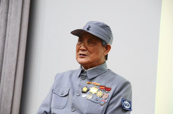 本次活动专门邀请抗战老兵焦润坤先生作为主讲人,他以口述历史的方式向在场观众讲述了抗战时期那一个个让他铭记一生的瞬间。老先生带领我们共同回忆了革命先烈的英勇事迹,他强调,讲述历史是老一辈的责任,而在场的大学生们则要肩负起铭记历史的重任。