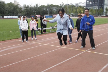 随后,运动会各项目开始有序进行。第一个项目为“七人八足”。同学们七人一组,共分成五组进行计时竞速。经过了赛前练习磨合,同学们在正式比赛中均表现出色。在“螃蟹赛跑”项目中,参赛的同学两人一组,背靠背或者面对面夹着一个排球横向赛跑。在这个项目中,同学们赛出了成绩,体现了奋力拼搏的体育精神。而“单人跳绳”项目需要统计参赛者一分钟内的跳绳次数。在“集体跳绳”环节,每位同学都积极参赛,场上欢声笑语不断。