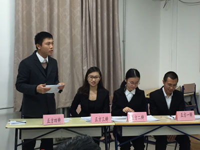 2015年11月20日晚8时,研究生辩论赛之四强争夺战在教二109激烈开赛,全场座无虚席。本场比赛由历史学院与汉语文化学院分别作为正反方,就“社会是否应该支持整容”的辩题上演了扣人心弦的唇枪舌战。最终汉语文化学院赢得比赛,我院遗憾止步八强。
