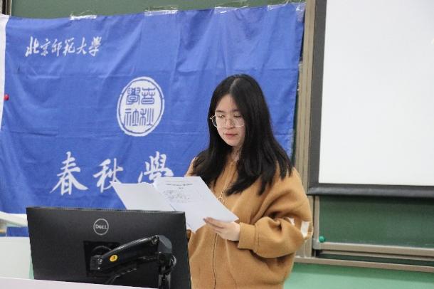 2025年5月9日20:40,北京师范大学春秋学社第六次理事会换届会议在教十110室成功举行。会议有幸邀请到历史学院团委书记唐静宜老师出席,春秋学社46名代表到场参加。大会由企划部部长肖宜佳主持。