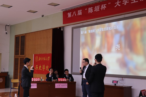 晚7时许,比赛在恢弘大气的开场视频和主持人热情洋溢的开幕致辞中拉开帷幕。各代表队依次入场。随后,主考官张端成上场,竞赛正式开始。今年的赛制灵活新奇,在知己知彼、争分夺秒、抽丝剥茧、心有灵犀、步步为营等选手答题环节之外,主考官还精心准备了观众答题环节,鼓励观众参与,这也体现了“陈垣杯”弘扬历史文化、关照群众生活的理念。群雄逐鹿,异彩纷呈。经过激烈的比拼,首都师范大学代表队与中国人民大学代表队获得三等奖;南开大学代表队获得二等奖;北京师范大学代表队成功卫冕,再夺冠军。参赛选手们获得了由商务印书馆出版的12卷《柳诒徵文集》等精美图书作为奖品。