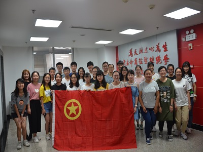 会议在庄严的共青团团歌中拉开序幕。会议开始,首先由本科生团总支书记田苗苗对此次招新工作进行了初步总结,提到了招新过程中18级新生们积极参与学生工作的热情和分团委此次招新工作的丰硕成果,强调了新媒体公众号平台在招新过程中发挥的作用,并宣读了第39届分团委团干事名单。随后,由分团委书记胡小溪老师、副书记邢海和宿雅婷以及本科生团总支书记田苗苗为新生团干事佩戴团徽并合影留念,以镜头定格下这具有纪念性意义的一刻。在会议的最后,胡小溪老师发表了讲话,提出新一届团干事不仅要完成身份的跨越,更要完成角色的转变,通过执着的精神与事业心来证明自己的优秀,在团学工作中收获成长。