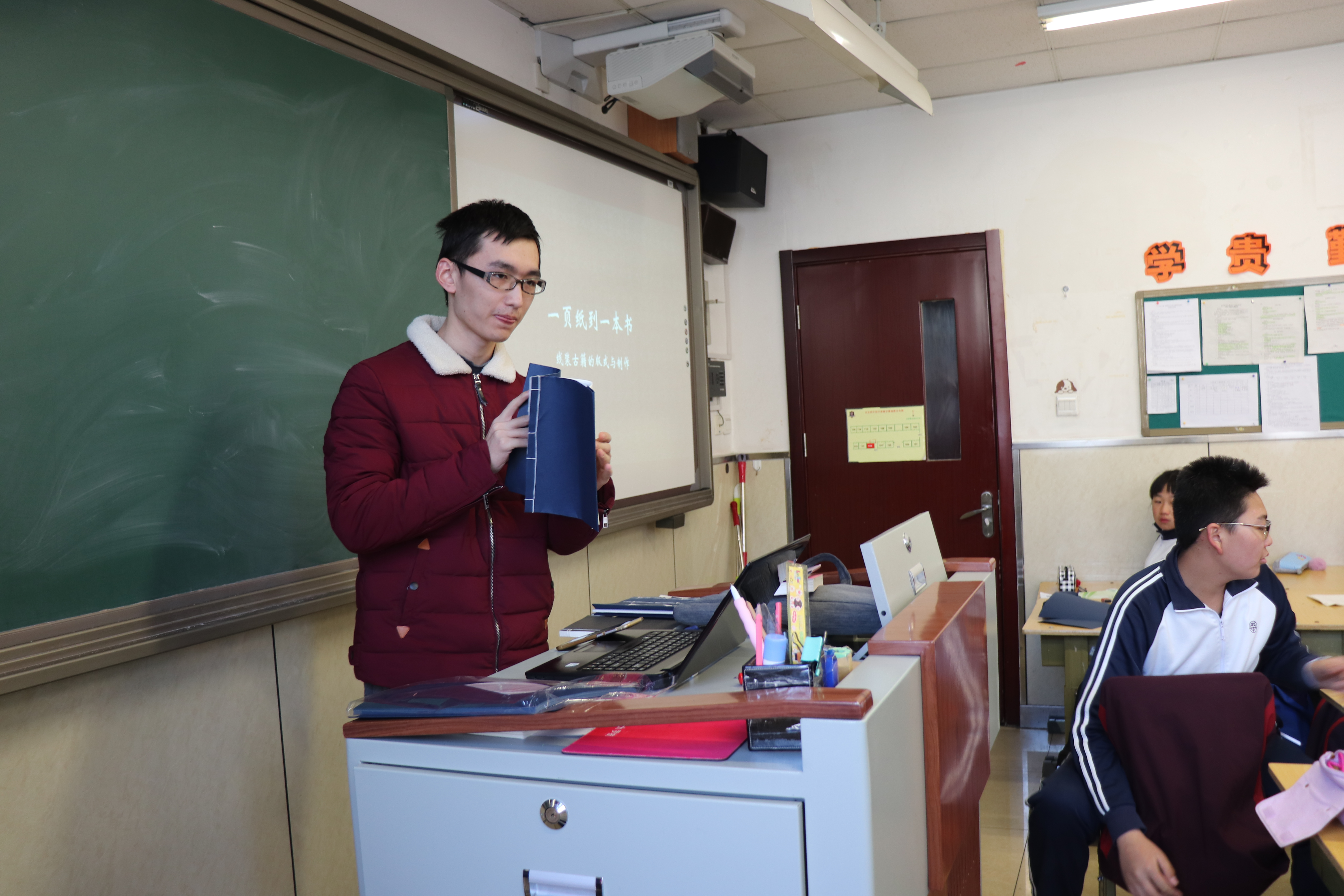 12月12日,春秋学社一行三人前往北京四中东校区初一(9)班,与学生们一起分享线装书的制作方法及经验。春秋学社部分大二同学和大一同学前往参加。
