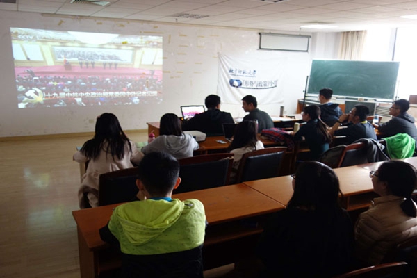 党的十九大和十九届一中全会召开期间,“形势与政策”小组还组织成员先后收看了10月18日十九大开幕式、10月24日十九大闭幕式的直播报道和10月24日“新闻联播”中播发的“中国共产党第十九届中央委员会委员名单”、“中国共产党第十九届中央委员会候补委员名单”、“中国共产党第十九届中央纪律检查委员会委员名单”,10月25日“新闻联播”中播发的“中国共产党第十九届中央委员会第一次全体会议公报”、“习近平等领导同志亲切会见出席党的十九大代表、特邀代表和列席人员”以及“中央政治局常委、委员、书记处书记简历”等报道,学习了10月27日新华社全文播发的“习近平在中国共产党第十九次全国代表大会上的报告”和授权全文播发的新修改的《中国共产党章程》。