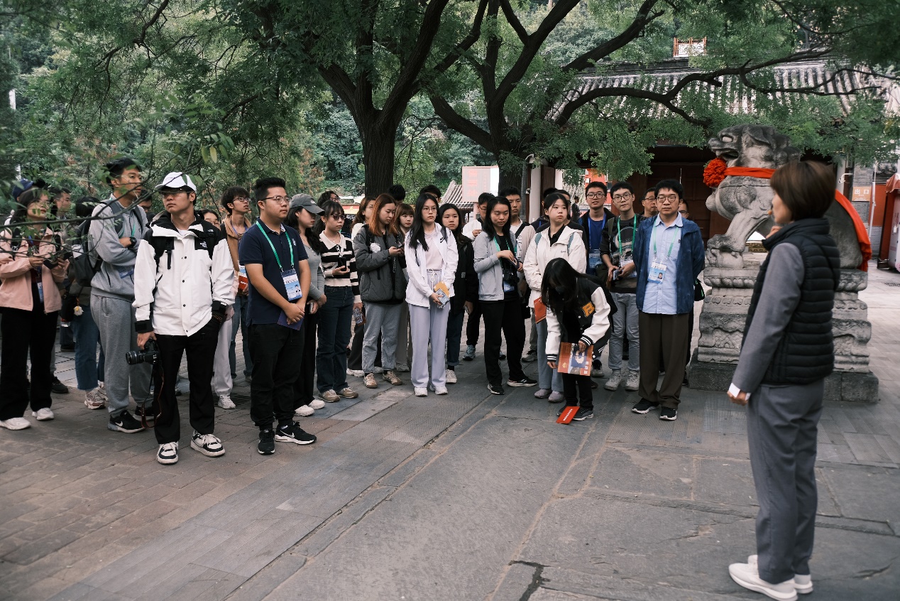 29日下午,在导览员的带领下,同学们抵达云居寺学习了文字印刷的历史和过程,在复建古塔下方参观石经地宫。云居寺辽北塔形制特殊,存世数量少,极富历史价值,四角又有唐塔分布,最早可追溯至唐景云二年(711年),塔面铭文尚存。贴近观察千年前的建筑,同学们不由得惊奇而震撼。
