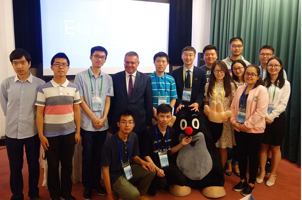 路德维特参赞与大家一同观看了介绍欧盟和捷克共和国的短片,并为大家准备了有关欧盟知识的小测试。沐浴在庄重恢宏的欧盟盟歌《欢乐颂》音乐中,同学们进一步理解了欧洲人民为谋求国家联合、世界和平所做出的不懈努力;徜徉于自然与人文编织的和谐长卷里,同学们直观地碰触到了一个五彩斑斓的捷克——她不仅有油画般优美的湖光山色,也有着底蕴深厚的历史文化名城以及富有活力的现实生活。
