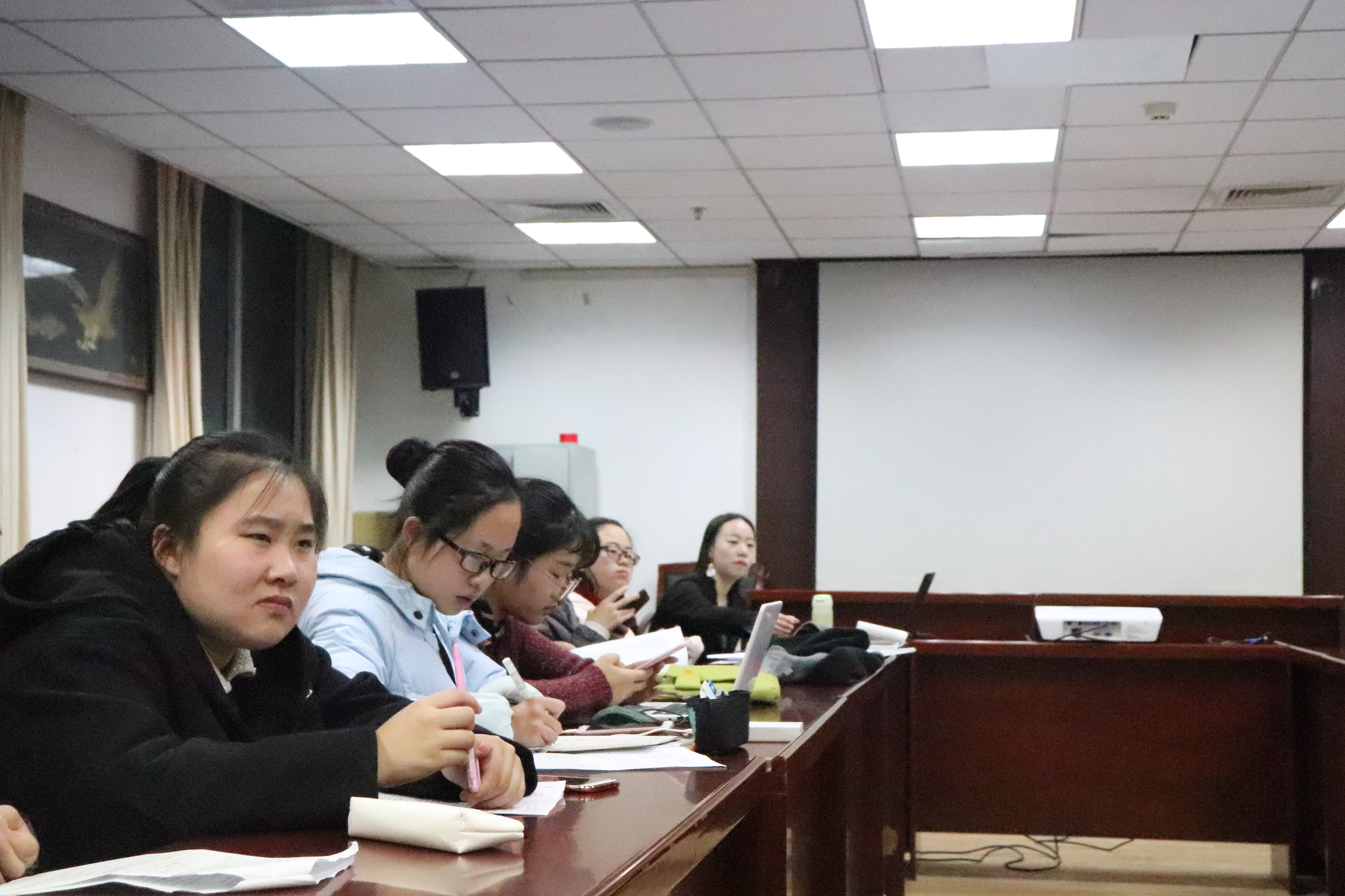 随后,《霍小玉传》研读正式开始。首先由各部门的同学针对自己部门重点研读的段落发表看法、提出问题。公关外联部陈力文就小说中出场的人物所属阶层的来源及唐代科举制度等方面提出疑问。学术网络部李琳以“开帘风动竹,疑是故人来”一句引出发言内容,对小说主人公的身份及故事的真实性提出疑问,并在查阅《旧唐书》、《新唐书》等资料后得出了自己的看法。之后,新闻部、宣传部、编辑部及办公室的同学就小说中人物的身份背景,小说中体现出的唐代社会风俗、礼教风化、社会思潮以及笔记小说的文献价值提出疑问或发表看法。