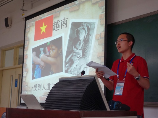 当天下午,哲学学院2014级本科生、形势与政策”小组成员卢冰屿同学也在教二301的“思修”课堂走上讲台,以“伤痛与思索:武装冲突下的难民问题”为题进行讲解。他以巴勒斯坦地区的难民问题为例,具体分析了该地区难民问题产生的历史原因、现状及其面临的国际环境,尖锐地指出了个别国家在面对难民权益问题时强硬自私的态度,希望同学们多关注、关心难民问题,做力所能及之事。