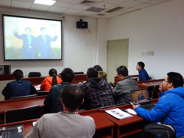 11月7日,我院“形势与政策”小组在主楼A805成功组织观摩会,就海峡两岸领导人习近平与马英九于新加坡会面的直播报道进行观摩学习。