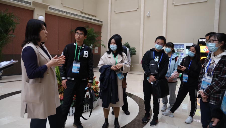 在位于报社一楼的阳光大厅,张若琼老师和新媒体中心海外推广部门负责人张少伟老师与同学们亲切交流,热情地回答了大家提出的问题,介绍了《中国日报》在新闻传播中“客观温和”的态度,鼓励同学们积极传播中国声音,努力为中国的新闻事业做出贡献。最后,同学们在《中国日报》外文版展览墙前留影纪念。