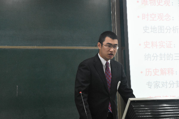 我院学生陈子梁说课的主题是“西周分封制的对象”,运用丰富的材料对相关知识做了较为清晰的讲解,并且在此基础上进行升华,阐释分封制对塑造中国古代政治、文化一些基本特征的重要价值,展现了相对扎实的史学功底和独特的思考角度。