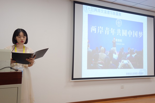各项任命结束之后,第十二届“形势与政策”小组组长秦雅婕发表感言。她回忆了与小组相遇的情景,表示在小组的时光让她收获了自豪感与幸福感。秦雅婕肯定过去一年小组成员的辛苦付出,对各项工作和活动的成功开展表达感谢。她希望小组是每一位成员永远的家。清华大学学生海峡两岸交流协会会长谢子欣代表兄弟高校社团发言。她对小组在理论知识学习、实践活动和新媒体宣传等方面的优秀经验表示赞赏,希望继续和小组保持深层次的友谊,真诚祝愿小组的明天更加美好。