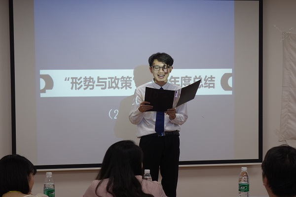 总结会开始前,与会师生共同观看了2018-2019年度“形势与政策”小组总结视频,回顾小组过去一年的工作与活动。第十二届“形势与政策”小组组长秦雅婕作《【华体会网】“形势与政策”小组2018-2019年度工作报告》。报告指出:这一学年,“形势与政策”小组在学校和学院的悉心指导和大力支持下,继续完善组织建设、充实常规活动,全面配合学校《形势与政策》课程建设工作,大力推进校外实践,深入展开校际交流,积极参与国际友好交往,倾力铸造小组品牌活动,引起校内外媒体的广泛关注和报道。本学年,小组通过新媒体平台展示小组成员的优秀作业;在第十届“博古通今 胸怀天下”北京师范大学时事知识竞赛举办之际,专门推出“闪光记忆:时事知识竞赛十周年巡礼”系列特辑;制作一系列特色小组徽标和文创产品,成为小组工作的亮点。特别是2019年5月中国国民党前主席、中华青雁和平教育基金会董事长洪秀柱应邀访问北京师范大学并与小组成员会面,高度评价“形势与政策”小组对中华民族前途的自觉关注和使命担当,在小组两岸交流的历史篇章中再次书写了浓墨重彩的一笔。