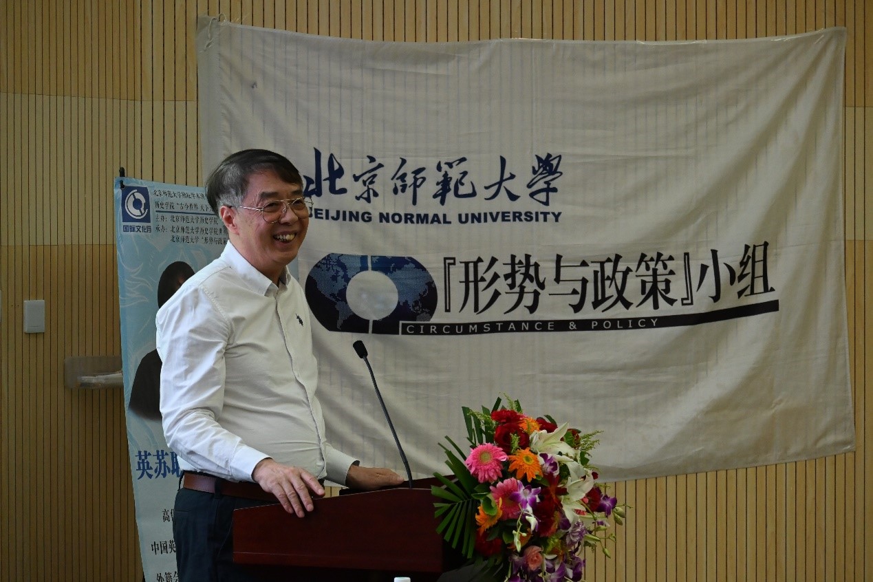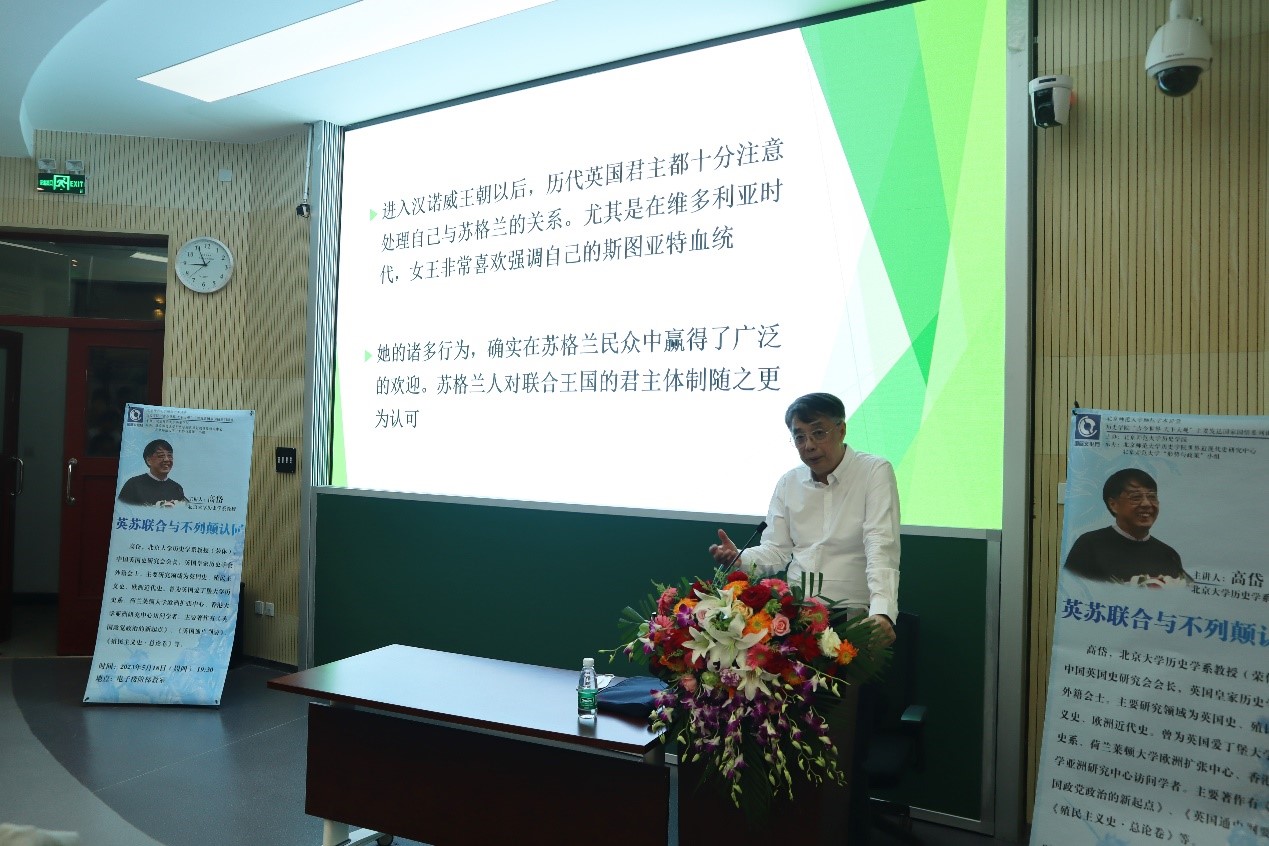 2023年5月18日晚,英国皇家历史学会会士、中国英国史研究会现任会长、北京大学历史学系教授(荣休)高岱应邀来到我校,在电子楼阶梯教室做了题为“英、苏联合与不列颠认同——1707年以来英、苏关系的历史探析”的讲座。本次讲座系北京师范大学励耘学术讲堂系列讲座,也是历史学院“古今世界 天下大观”——主要发达国家国情系列讲座的第十六讲。
