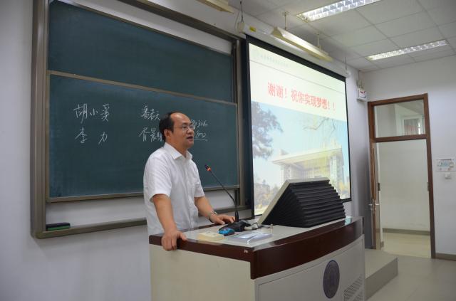 而后,历史学院副院长姜海军老师上台向同学们介绍学院的科研教学情况。姜老师首先指出,历史学院学科综合实力强大,曾荣获诸多重大奖项,并拥有庞大精良师资队伍,是历史学专业学习的极佳平台。然后,他向新生们呈现了我院专业实习、讲座论坛、对外交流的影像资料,同学们对我院主办的学术报刊、学术活动深感兴趣,深化了对专业学习的认识。姜老师还鼓励新生借助我院包括论文写作、大创项目等在内的学生科研创新体系,提升专业素质,多出成果,出好成果,同时积极参加我院的品牌性竞赛,提升综合实力。他提到我院近年来不断探索人才培养新模式,通过小班化教学等形式深挖学生潜力,开展公费师范生教育见习活动,从而实现了科研、就业双双创优的良好局面。在其间,姜老师还阐释了老一代学术前辈们为我院留下的优良学风,劝勉新生们修己自励,在实践中探索适合自己的学习方法,尽快完成高中向大学的转型。