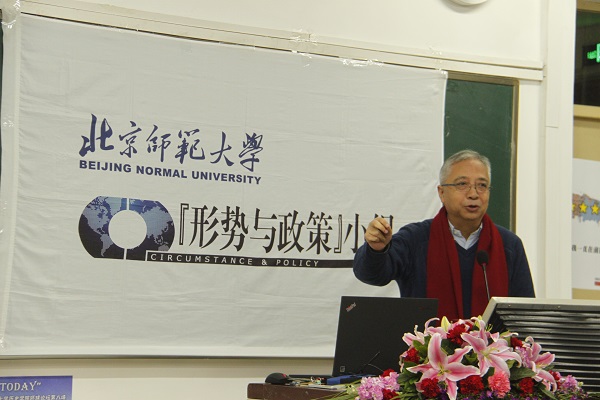 最后,本科生工作处处长王洛忠老师、历史学院院长杨共乐老师分别为“形势与政策”小组提出新年寄语,充分肯定了小组自成立以来所取得的工作成果,并对小组的发展提出了更高的要求和殷切的期望。王老师指出,“形势与政策”小组的活动发挥了历史学院的学科优势,满足着同学们的学习需求,推动着学生工作的创新发展,体现着文化育人、实践育人的教育理念,实现了思想政治教育的国际化,在首都高校内得到广泛声誉和积极反响。杨院长强调,历史是有思想的学科、有情怀的学科,更是引领时代的学科。他深切勉励小组成员,既要有厚重的历史文化底蕴,又要有强烈的时代担当精神,要在以后的学习中将知识内化为自己的思想,做一个有卓然思想、有担当精神、有深厚底蕴的人。老师们的一席话让同学们受益匪浅,活动在热烈的掌声中圆满落幕。