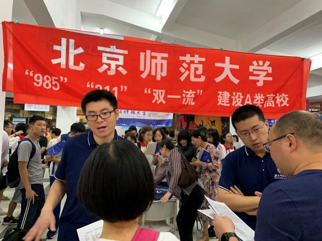 今年的招生咨询过程中,考生和家长问得比较多的问题是理科实验班、文科实验班、瀚德实验班等人才培养模式有何特色及其与其他直升专业的异同之处、北师大的优势学科、入校后转专业的可能性、未来是否可以当老师、研究生保送率以及校园环境尤其是住宿条件是否改善等,现场老师对面带微笑耐心进行一一解答,打消部分家长的疑虑,鼓励在录取分数段内的考生积极报考。此外不断还有高二学生和家长前来咨询,希望提前获取北师大的相关资讯,咨询老师鼓励孩子们未来一年好好努力,最终能够圆梦北师大。