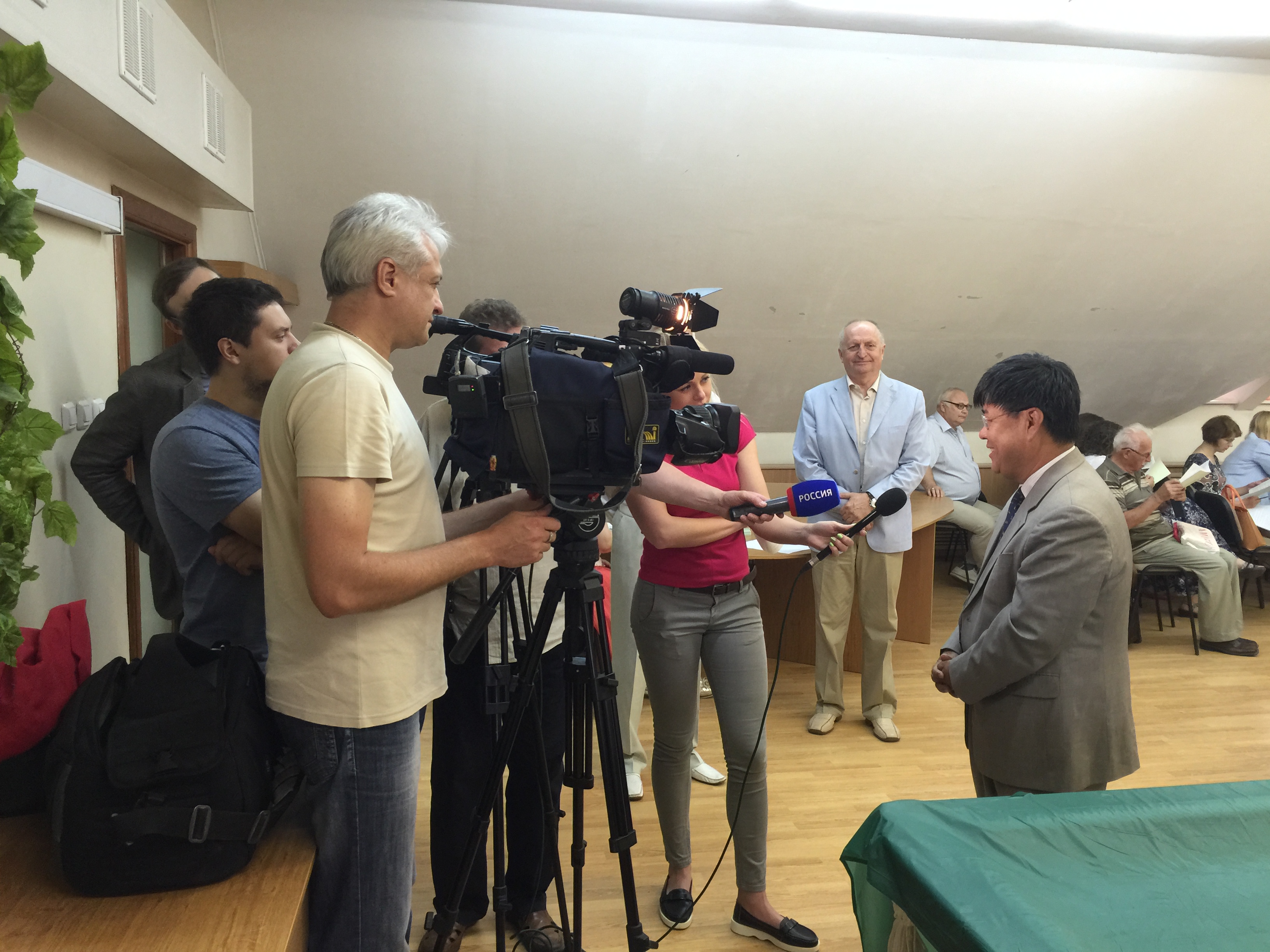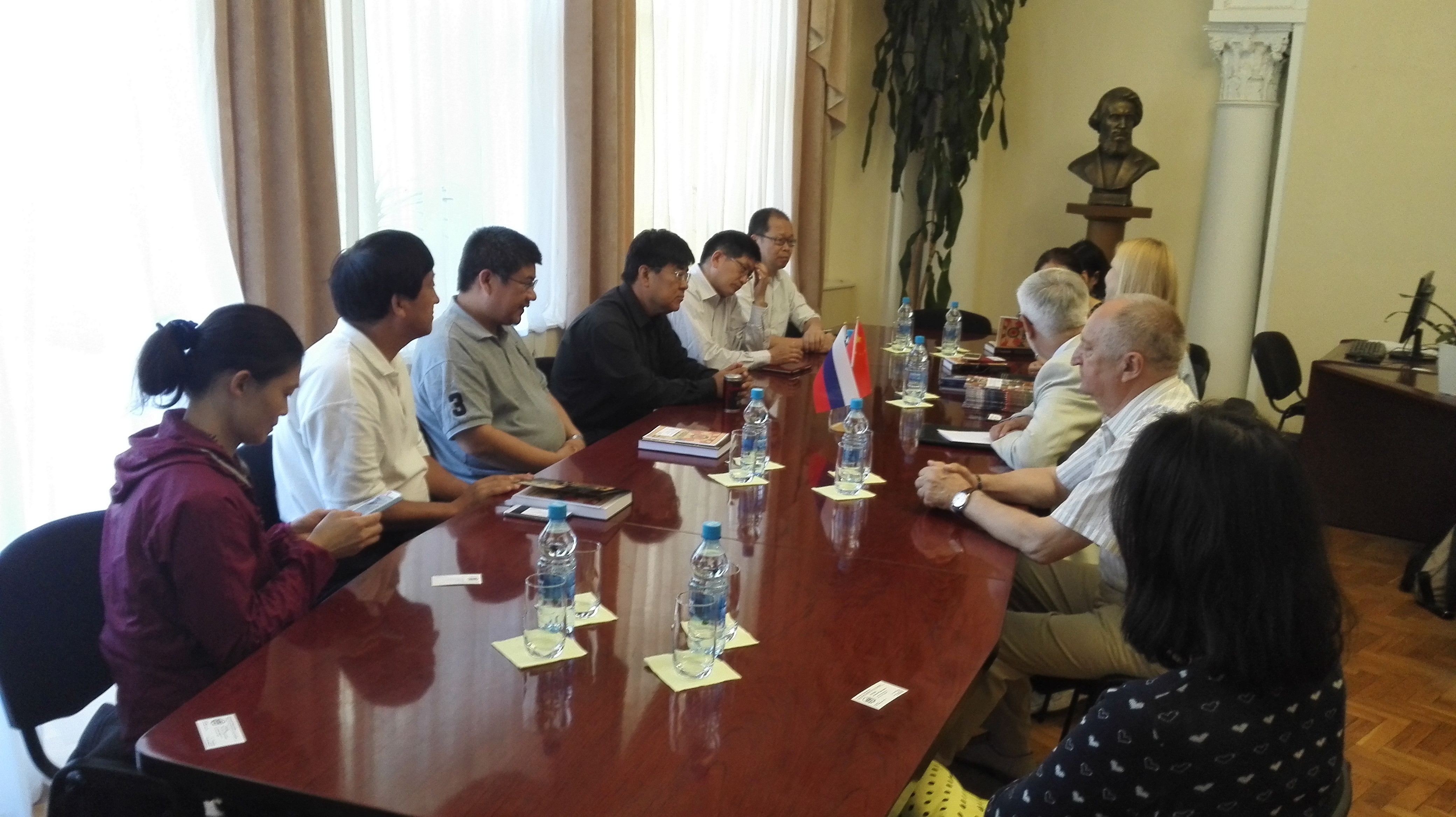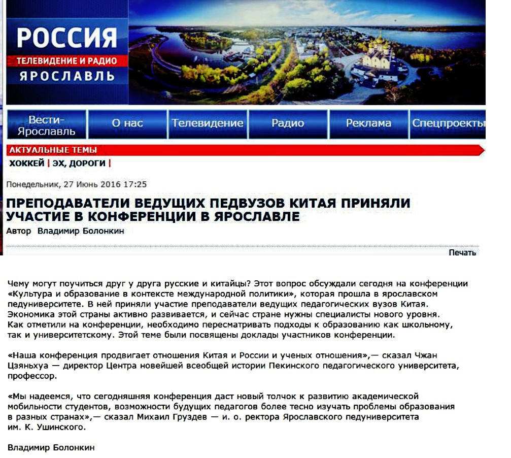 在会议期间代表团与莫斯科大学历史学者座谈,张建华教授接受了俄罗斯重要媒体“俄罗斯”电视台的采访,他指出:“此次会议促进了两国学者深入的交流与合作,为中俄两国共同的文化繁荣做出了贡献。”该电视台在新闻中对这次会议做了全程介绍。该校校长米哈伊尔·格鲁兹杰夫与代表团成员举行了会面。米哈伊尔校长介绍了该校近年来的发展成果与优势学科,并提出了以史学合作为基础,寻求雅罗斯拉夫尔国立师范大学与北京师范大学的多学科交流与合作机遇。此次会议俄方主要召集人——该大学前副校长、现任职业教育理论与方法教研室主任米哈伊尔·诺维科夫教授热情细致地安排了会议议程和我院代表团的学术活动。