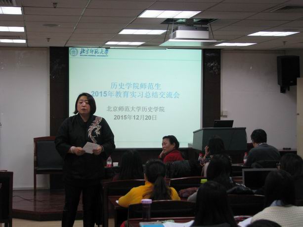 2015年12月20日下午,历史学院2012级师范生教育实习总结交流会在主楼600顺利举行。北京市丰台区教研员孙楠,海淀区教研员赵文龙、朝阳区教研员曹卫东、东城区教研员刘玉群、西城区教研员张逸红、我院郑林教授、侯桂红老师、李凯老师莅临指导。2012级免费师范生、普通师范生、2013级免费师范生参与了本次活动。本次会议旨在展示2015年秋季教育实习成果,交流总结教育实习经验,促进学生历史教学能力的提升。