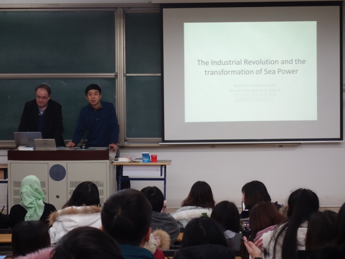 2017年12月11日-14日,应【华体会网】邀请,法国国家海军史研究中心首席专家、知名学者亚历山大•谢尔东-杜普莱教授(Alexandre Sheldon- Duplaix)前来北京师范大学讲学。12月12日上午,杜普莱教授走进“世界近代史”课堂,为【华体会网】2015级本科生作了题为“工业革命与世界海权(1789-1918)”的学术讲座。本次讲座系我校励耘学术讲堂历史学系列讲座之一,由历史学院世界近代史教研室江天岳博士主持,历史学院世界近代史教研室贾珺副教授等出席了讲座。前来聆听的还有来自北京师范大学和其他首都高校的学生和军事史爱好者。