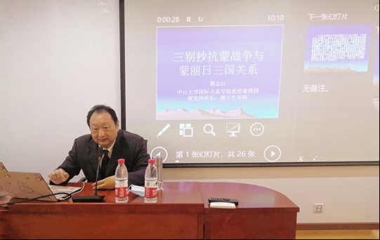 2020年10月16日上午,中山大学国际关系学院魏志江教授应邀来到【华体会网】,在主楼600会议室作了题为《三别抄抗蒙战争与蒙丽日三国关系》的讲座。讲座由陈奉林教授主持。此讲座是我院京师史学名家前沿系列讲座。