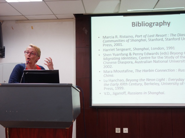 在讲座的第二部分,柯蓉教授讲解了上海俄国移民社区的早期发展。俄国人最初将上海作为其长途贩茶的转运站。随着上海发展为重要的贸易与金融中心,沙俄在上海的官方和民间商业机构逐渐增加。十月革命爆发后,作为自由港的上海吸引来大量白俄侨民。1926年上海俄侨委员会成立,并建立了上海首个俄国人聚居区。这是由不同民族、不同社会阶层组成的多元文化群体,其中不乏一些专业人士,可以凭借自身能力与租界居民竞争就业;但更多的在沪俄国人鲜有一技之长,又不懂租界通用的英语,长期生活无着。直到1925年上海爆发中国工人大罢工期间,外国资本家才开始大量雇佣白俄工人。罢工浪潮逐渐平息后,白俄工人再次面临失业境地。迫于生计,他们中的男性有的加入上海民兵组织“万国商团”,有的拼上性命为中国富商做保镖,还有的成为盗窃犯或乞丐;有些女性则沦为为性工作者。白俄侨民开始融入上海这个国际大都会,而随着同母国和民族文化的联系慢慢淡去,他们政治地位和社会观念的错位也在日益加剧。