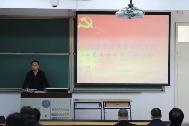 2021年4月22日,历史学院召开党史学习教育动员会暨专题报告,会议由耿向东书记主持,历史学院全体教师参加会议。
