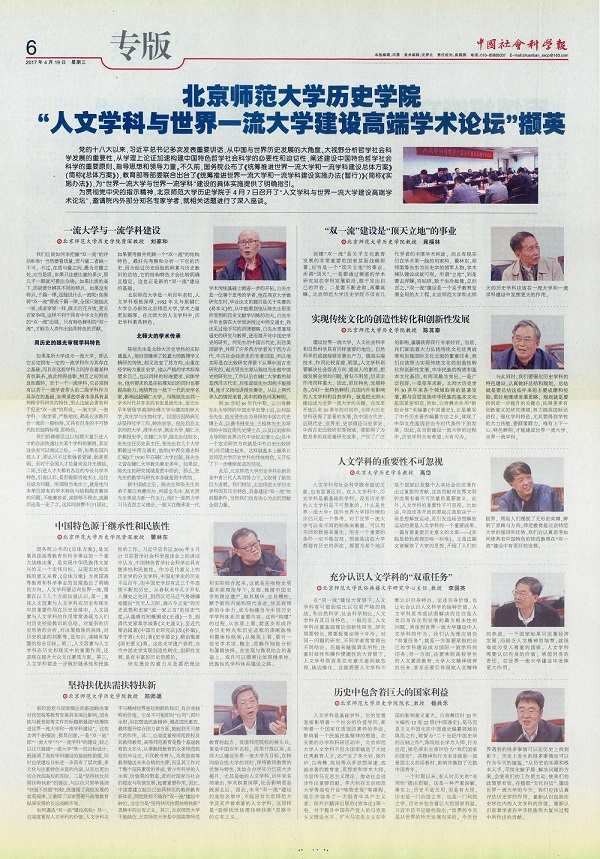 《中国社会科学报》整版报道我院召开“人文学科与世界一流大学建设”高端学术论坛