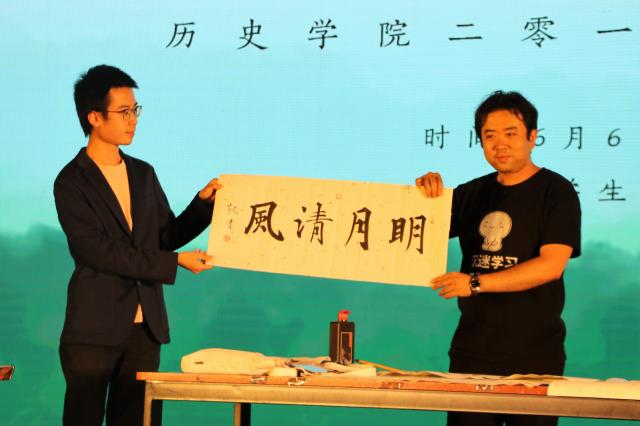 随后,历史学院院长杨共乐老师上台讲话,他对毕业生圆满完成学业表示祝贺,勉励毕业生在今后的学习和工作中积极奉献,践行校训院训,祝福毕业生们未来的道路一帆风顺。