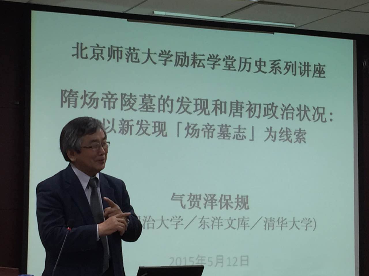 2015年5月12日下午3时至5时,日本明治大学气贺泽保规教授在主楼600历史学院会议室为我院师生作了题为“隋炀帝陵墓的发现和唐初政治状况:以新发现《炀帝墓志》为线索”的学术讲座。讲座由我院宁欣教授主持,现场座无虚席。