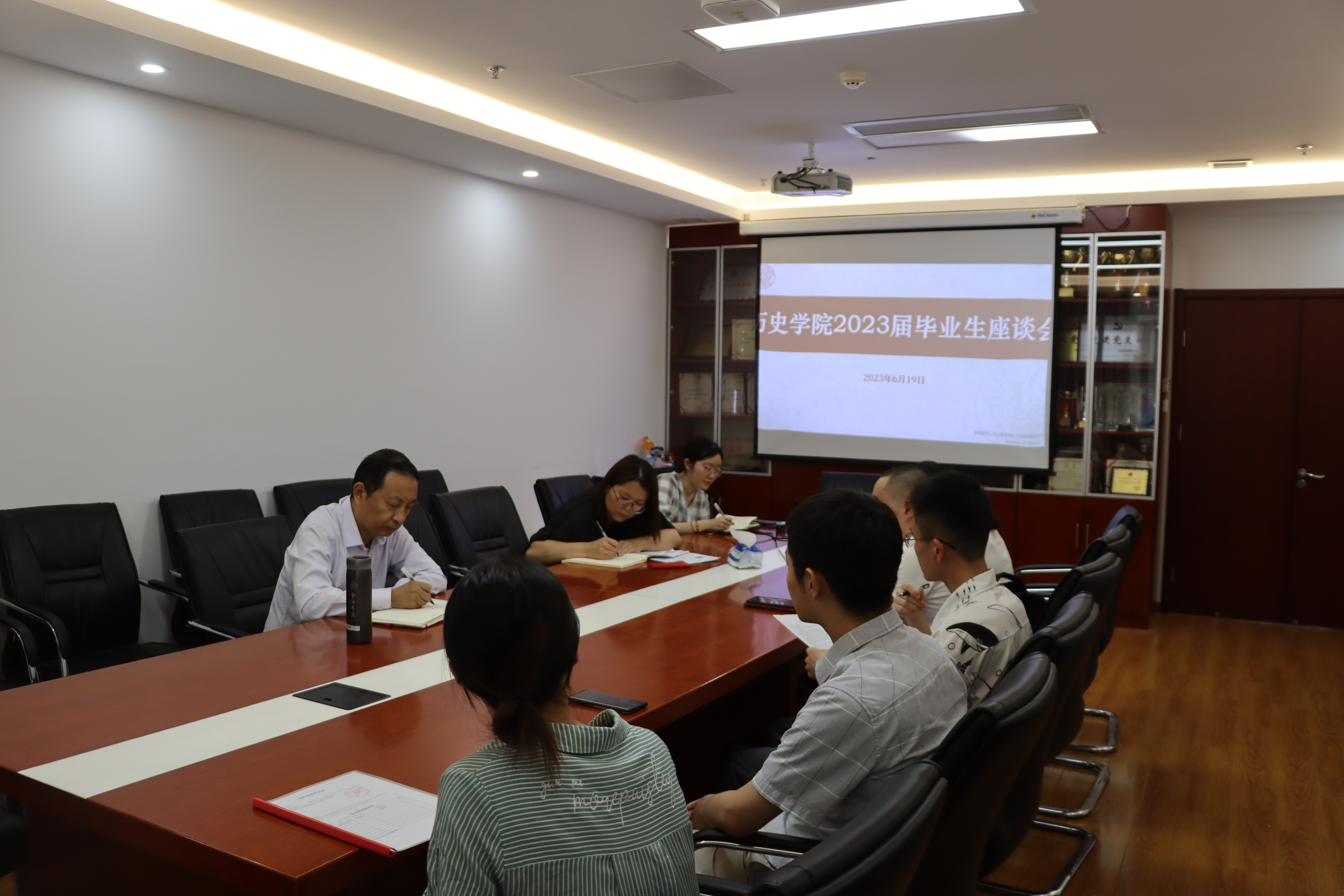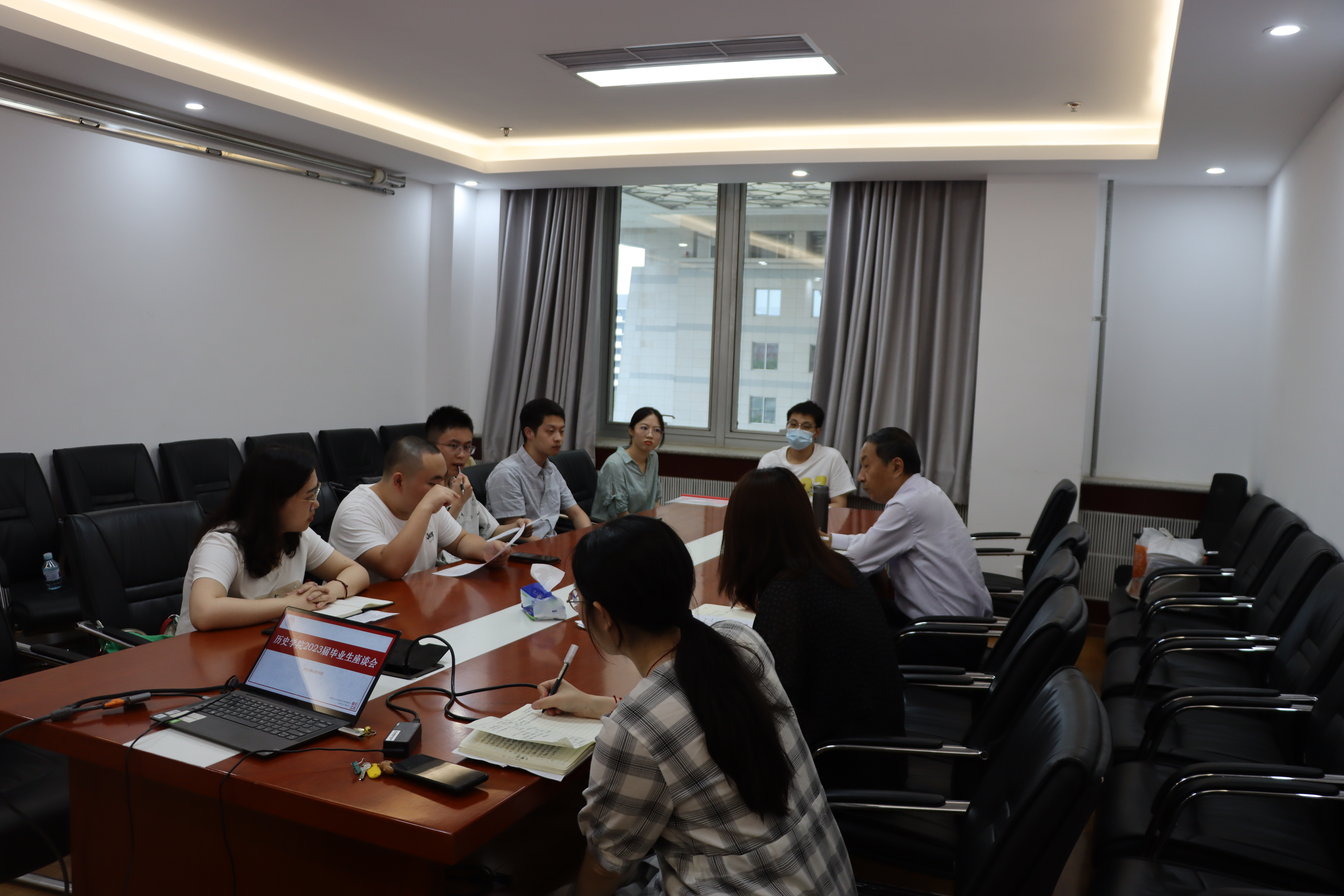 6月19日下午,历史学院在主楼616会议室举行2023届毕业生代表座谈会。历史学院院党委书记耿向东、党委副书记赵云慧、团委书记邢梦姗与本研各毕业年级的毕业生代表进行了交流。会议由学院党委副书记赵云慧主持。