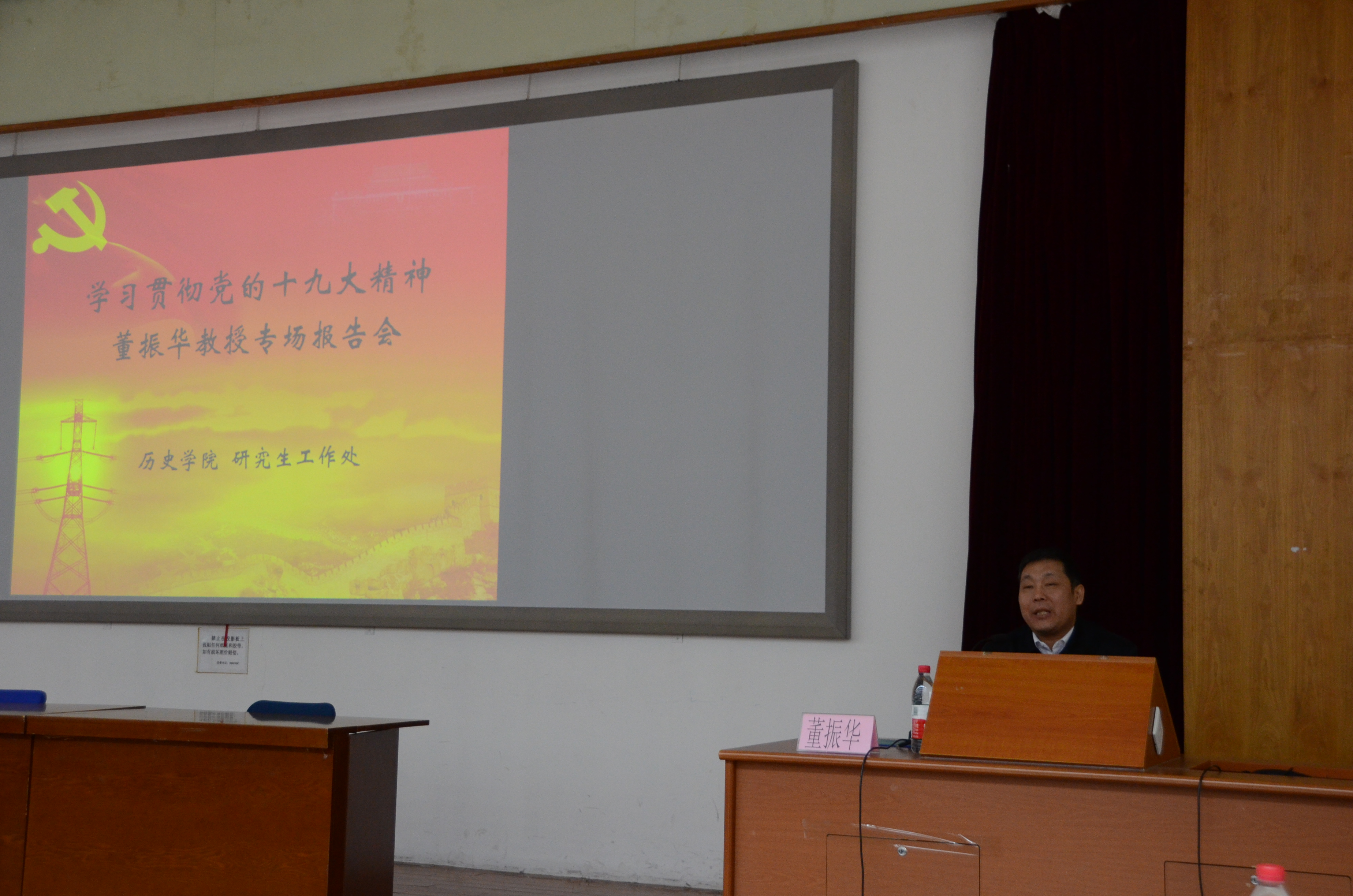 11月21日晚,【华体会网】二级党校在教九502举办题为“坚持习近平新时代中国特色社会主义思想,实现中华民族伟大复兴的历史使命——深入学习党的十九大精神”的专题讲座。本场讲座由中共中央党校哲学教研部副主任董振华主讲。历史学院青年教师及学生党员和入党积极分子、学校研究生新任支委与新发展党员、古籍与传统文化研究院党员等,共计400余人参加了此次讲座。讲座由历史学院分党委书记郭家宏主持。